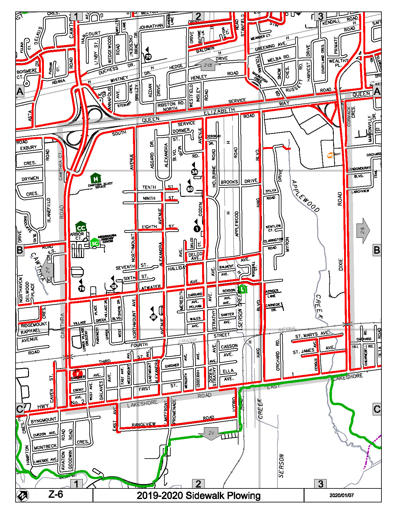 Priority sidewalks are marked with red lines ,multi-use trails with green lines, on the map below to indicate which areas will be plowed by the City of Mississauga when snowfalls exceed 8cm (3 inches). A priority sidewalk or priority multi-use trail is defined as being located on a major road or bus route or accessing hospitals, schools and nursing homes. We are counting on you to: Clear snow and ice from sidewalks as soon as possible after a snowfall to ensure that they are safe for all residents Help others, especially seniors and disabled persons to clear their driveways and sidewalks. .