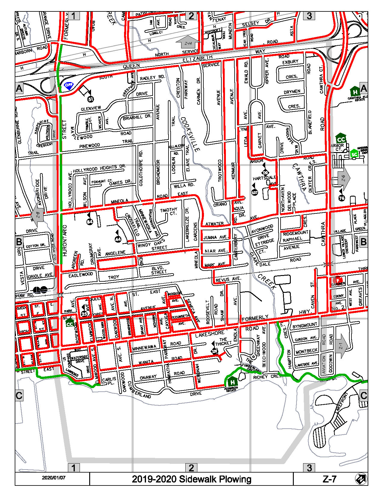 Priority sidewalks are marked with red lines ,multi-use trails with green lines, on the map below to indicate which areas will be plowed by the City of Mississauga when snowfalls exceed 8cm (3 inches). A priority sidewalk or priority multi-use trail is defined as being located on a major road or bus route or accessing hospitals, schools and nursing homes. We are counting on you to: Clear snow and ice from sidewalks as soon as possible after a snowfall to ensure that they are safe for all residents Help others, especially seniors and disabled persons to clear their driveways and sidewalks. .