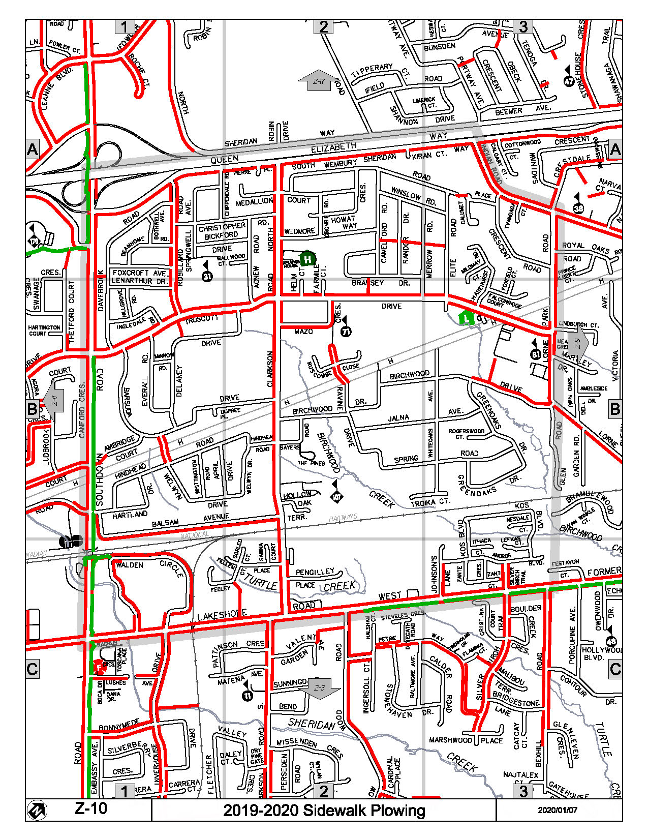 Map Z-10 of the Priority Sidewalk System for Snow Plowing