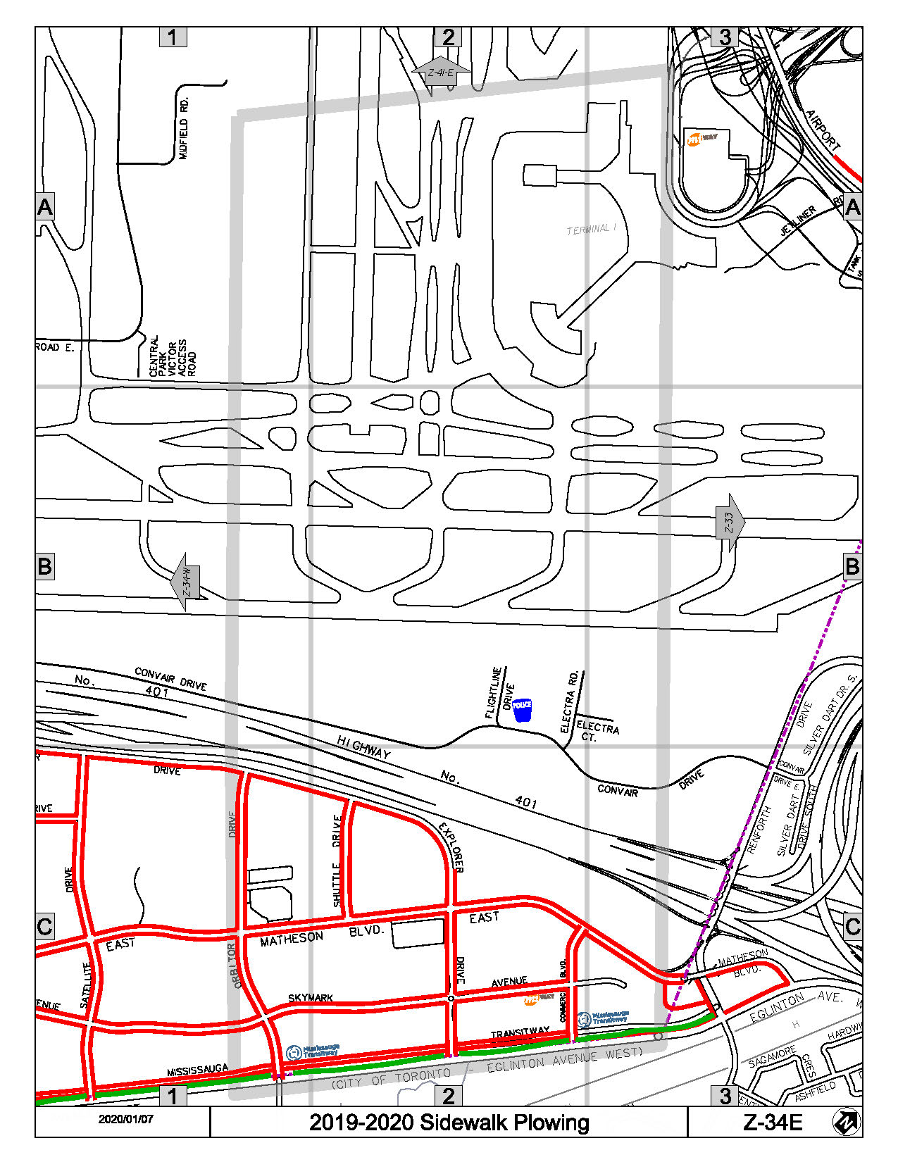 Priority sidewalks are marked with red lines ,multi-use trails with green lines, on the map below to indicate which areas will be plowed by the City of Mississauga when snowfalls exceed 8cm (3 inches). A priority sidewalk or priority multi-use trail is defined as being located on a major road or bus route or accessing hospitals, schools and nursing homes. We are counting on you to: Clear snow and ice from sidewalks as soon as possible after a snowfall to ensure that they are safe for all residents Help others, especially seniors and disabled persons to clear their driveways and sidewalks. .