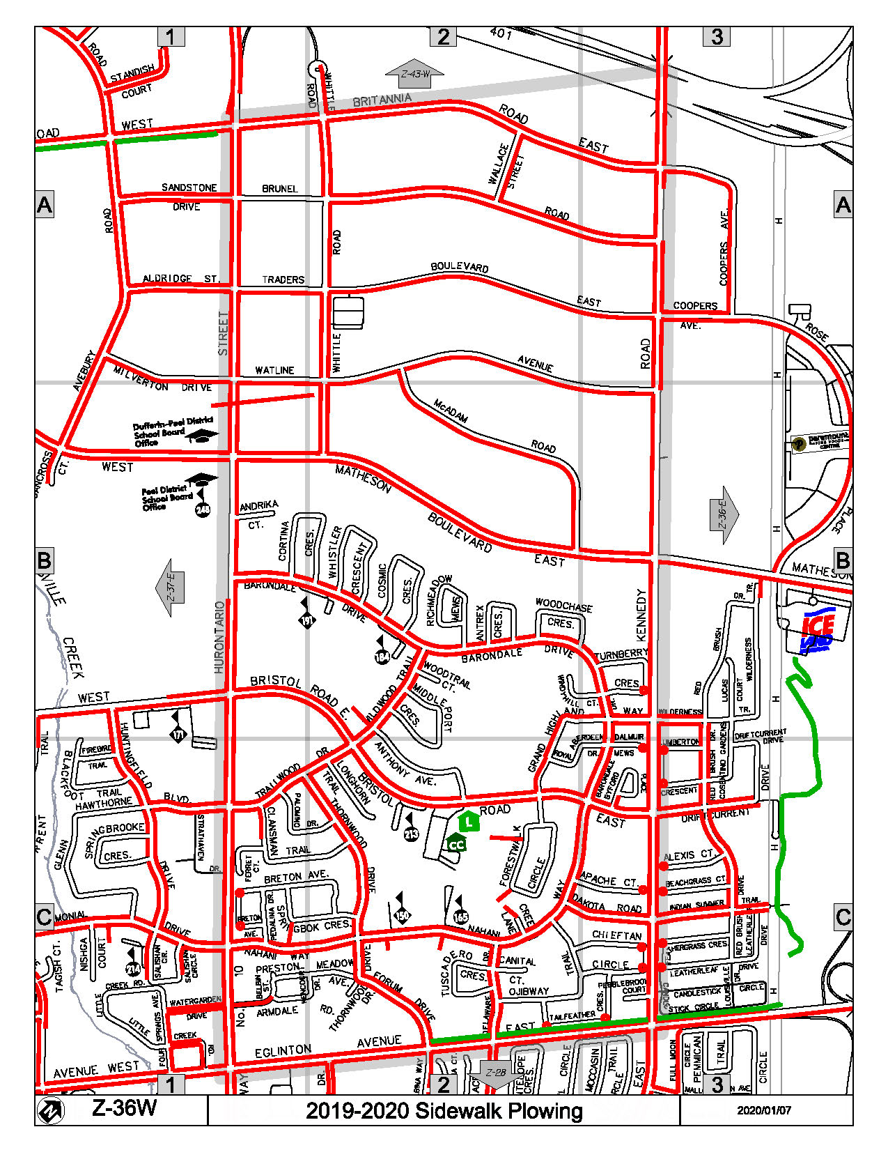 Map Z-36W of the Priority Sidewalk System for Snow Plowing