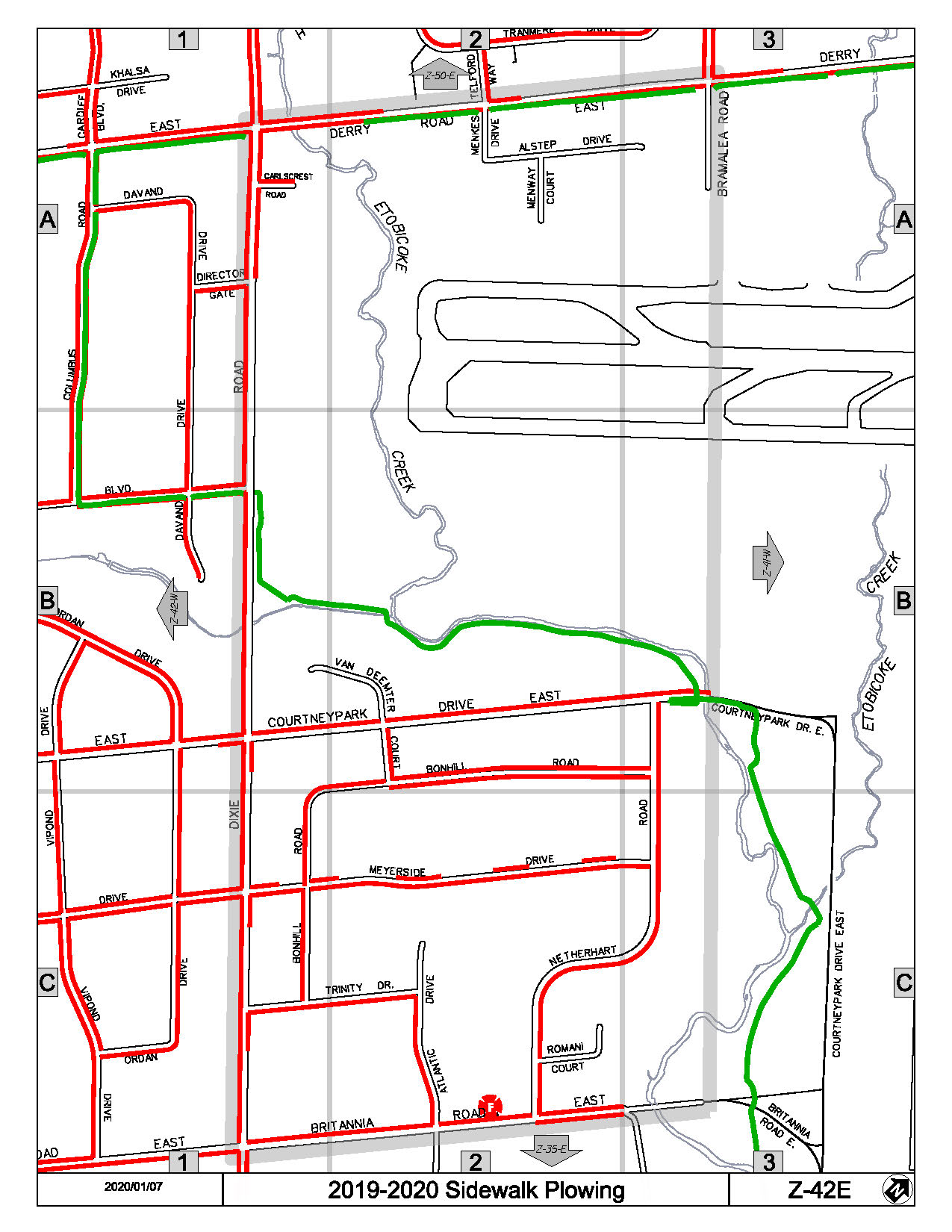 Map Z-42E of the Priority Sidewalk System for Snow Plowing
