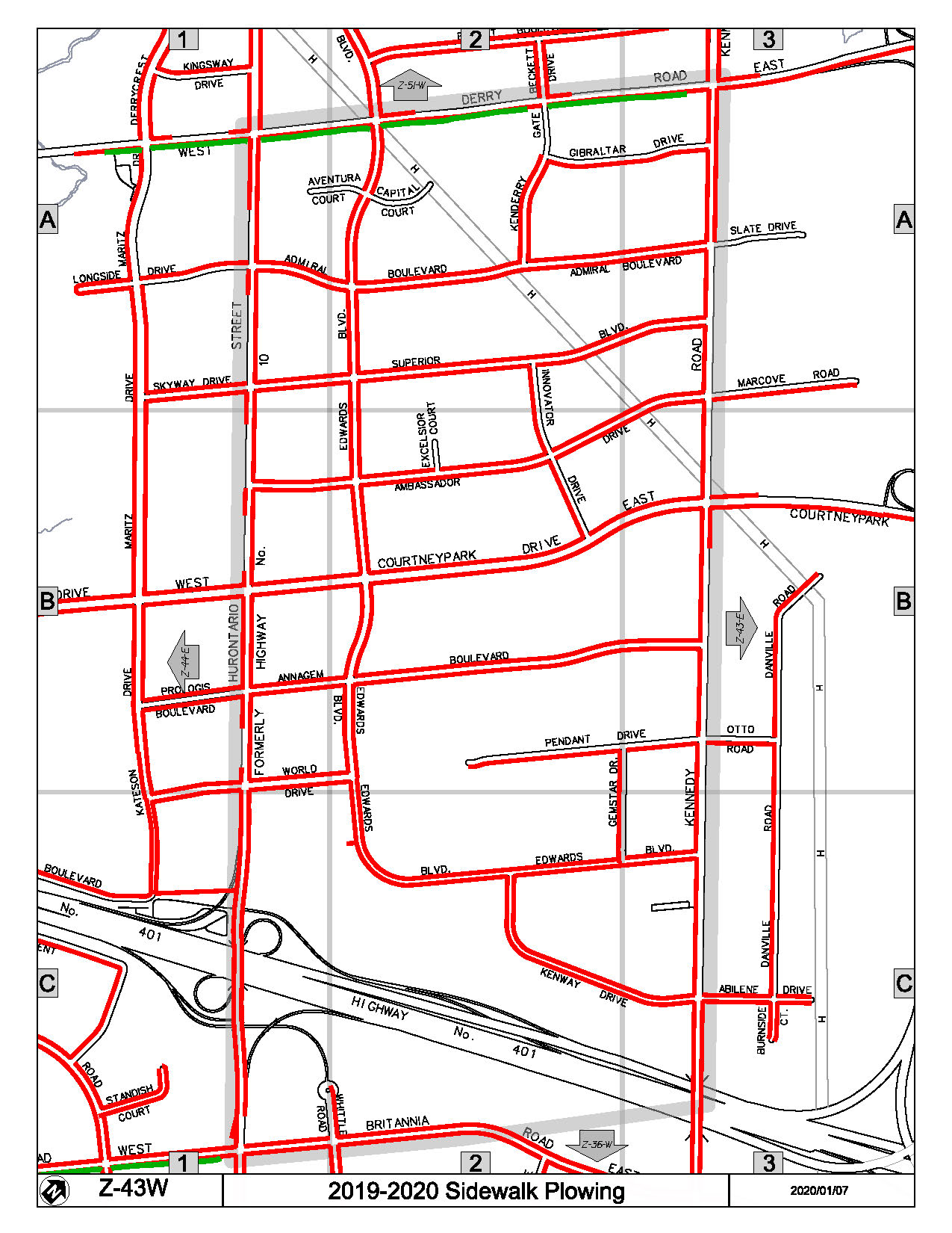 Map Z-43W of the Priority Sidewalk System for Snow Plowing