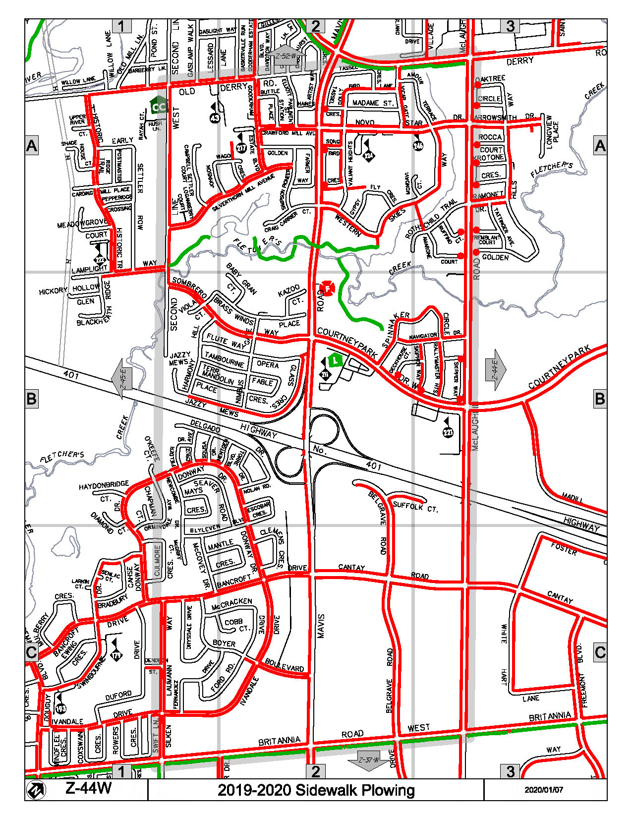 Priority sidewalks are marked with red lines ,multi-use trails with green lines, on the map below to indicate which areas will be plowed by the City of Mississauga when snowfalls exceed 8cm (3 inches). A priority sidewalk or priority multi-use trail is defined as being located on a major road or bus route or accessing hospitals, schools and nursing homes. We are counting on you to: Clear snow and ice from sidewalks as soon as possible after a snowfall to ensure that they are safe for all residents Help others, especially seniors and disabled persons to clear their driveways and sidewalks. .