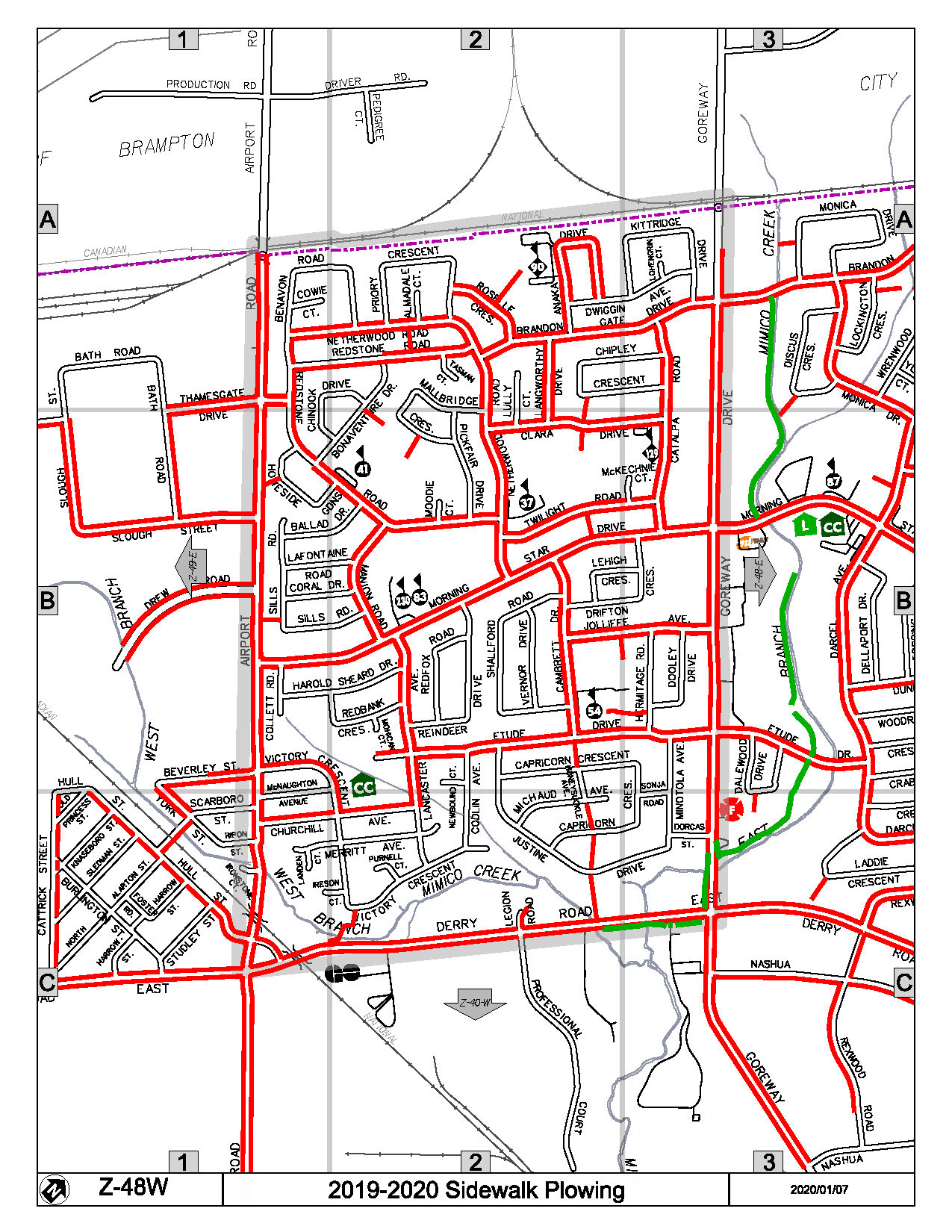 Map Z-48W of the Priority Sidewalk System for Snow Plowing