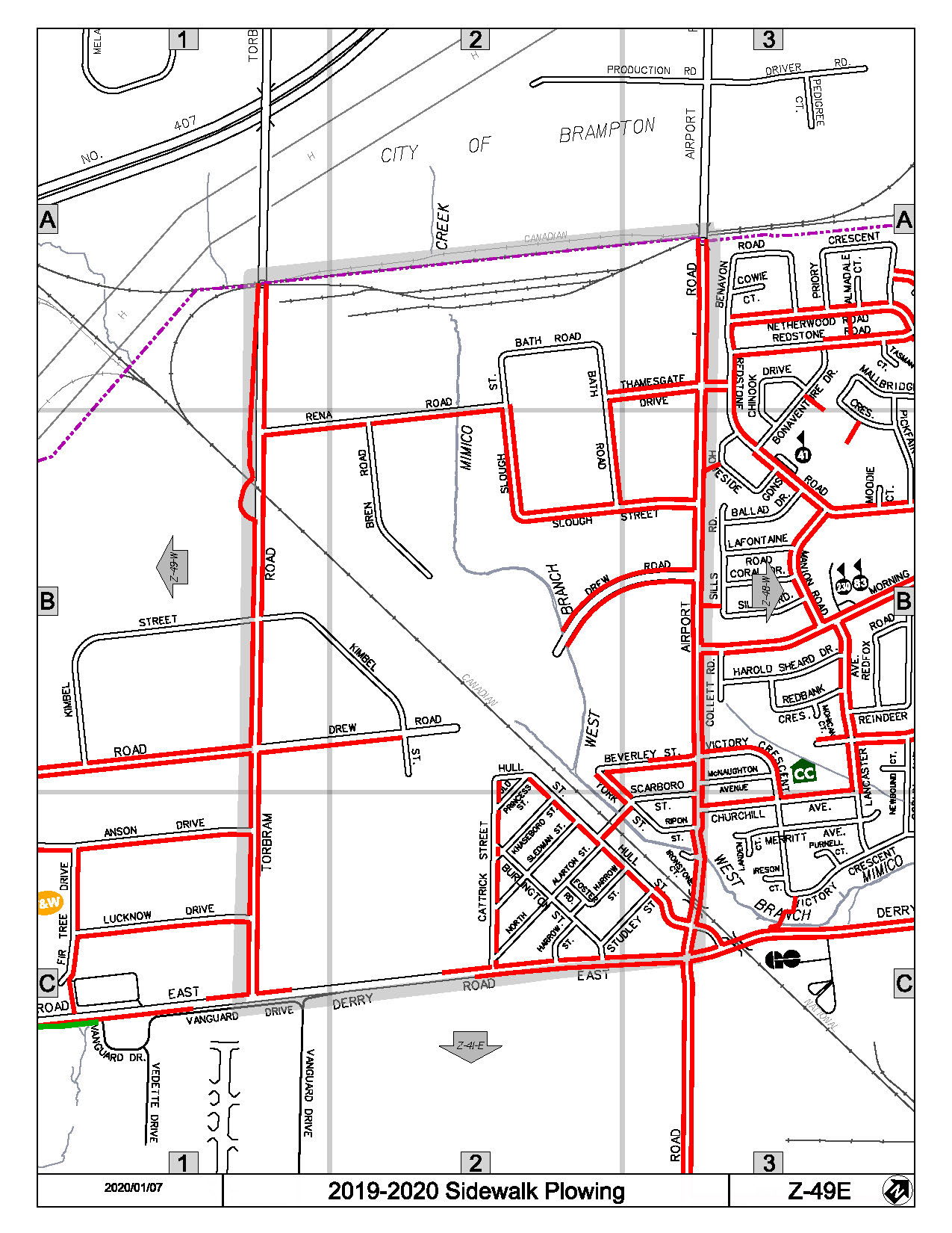 Priority sidewalks are marked with red lines ,multi-use trails with green lines, on the map below to indicate which areas will be plowed by the City of Mississauga when snowfalls exceed 8cm (3 inches). A priority sidewalk or priority multi-use trail is defined as being located on a major road or bus route or accessing hospitals, schools and nursing homes. We are counting on you to: Clear snow and ice from sidewalks as soon as possible after a snowfall to ensure that they are safe for all residents Help others, especially seniors and disabled persons to clear their driveways and sidewalks. .
