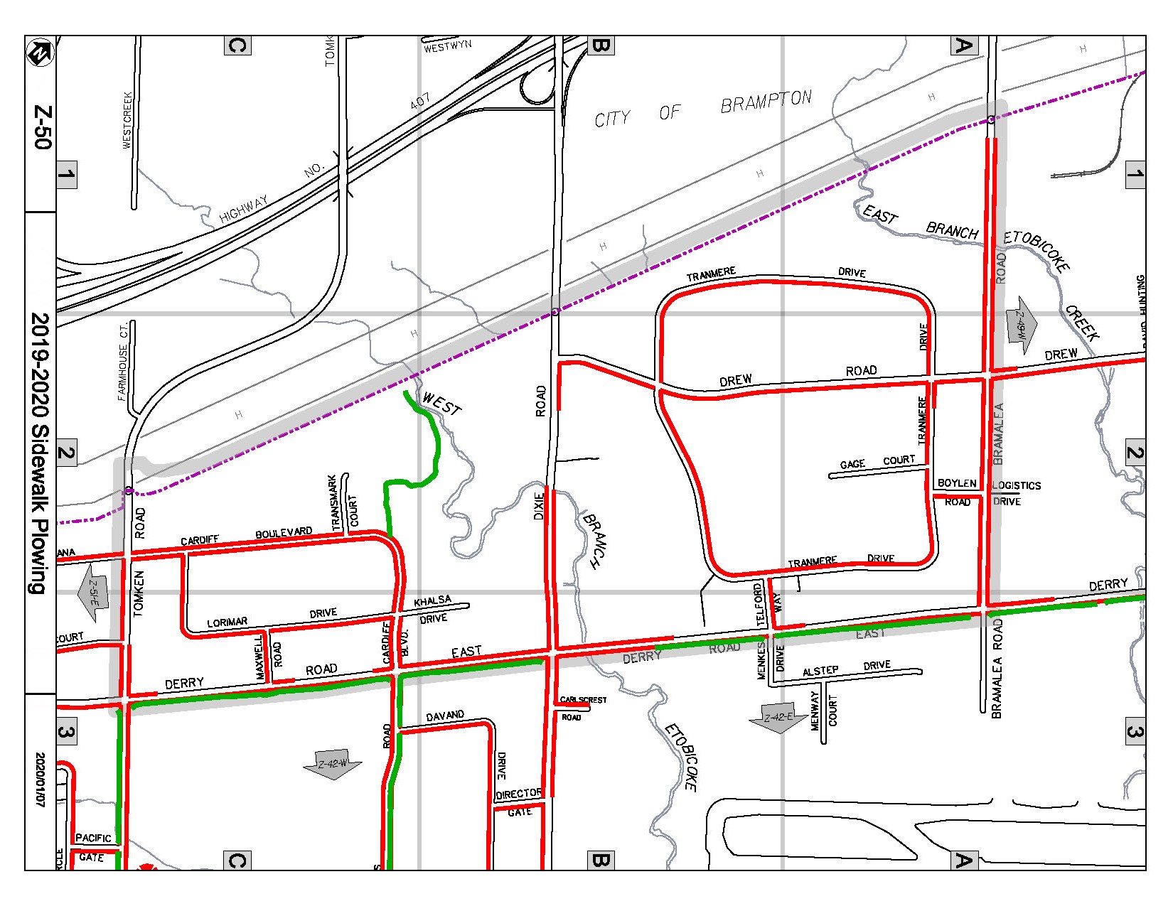 Priority sidewalks are marked with red lines ,multi-use trails with green lines, on the map below to indicate which areas will be plowed by the City of Mississauga when snowfalls exceed 8cm (3 inches). A priority sidewalk or priority multi-use trail is defined as being located on a major road or bus route or accessing hospitals, schools and nursing homes. We are counting on you to: Clear snow and ice from sidewalks as soon as possible after a snowfall to ensure that they are safe for all residents Help others, especially seniors and disabled persons to clear their driveways and sidewalks. .