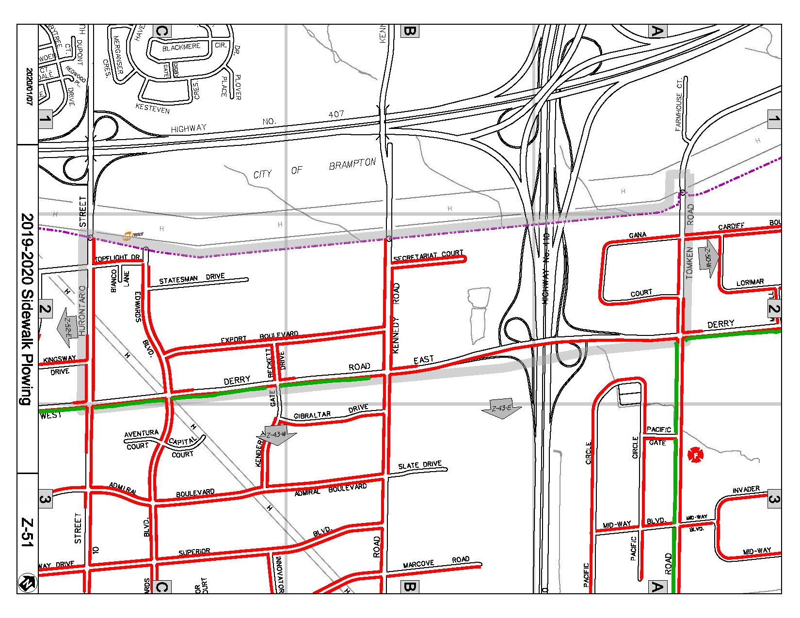 Priority sidewalks are marked with red lines ,multi-use trails with green lines, on the map below to indicate which areas will be plowed by the City of Mississauga when snowfalls exceed 8cm (3 inches). A priority sidewalk or priority multi-use trail is defined as being located on a major road or bus route or accessing hospitals, schools and nursing homes. We are counting on you to: Clear snow and ice from sidewalks as soon as possible after a snowfall to ensure that they are safe for all residents Help others, especially seniors and disabled persons to clear their driveways and sidewalks. .