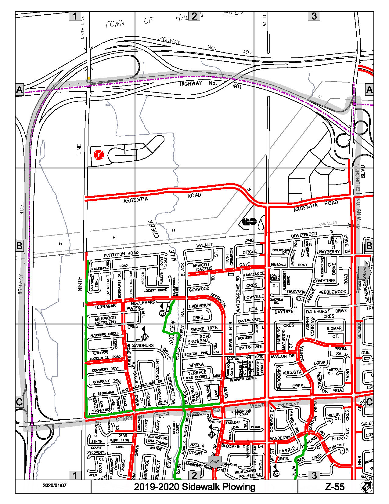 Map Z-55 of the Priority Sidewalk System for Snow Plowing