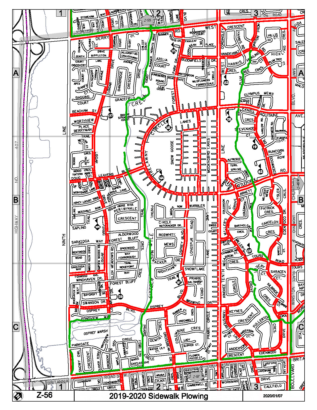 Map Z-56 of the Priority Sidewalk System for Snow Plowing